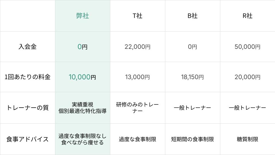 当ジムは大手パーソナルジムのように